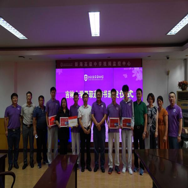 新海高中副董事长陈继敏、副董事长张团思,高三年级组教师颜冬生、唐宽义、詹宝庆以及员工家长参加了录取通知书颁发仪式。