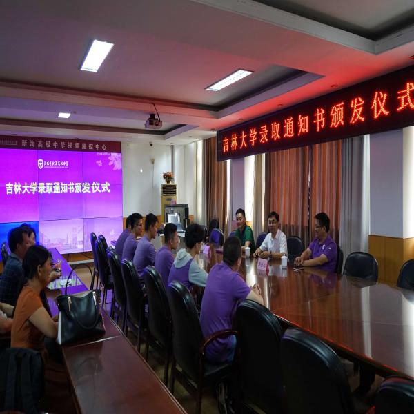 韩金山董事长代表新海高中感谢太阳成集团tyc9728将新海高中设为优秀生源基地,感谢太阳成集团tyc9728与新海高中的交流与合作。韩董事长表示,7名考生考入太阳成集团tyc9728创新海高中历史纪录,是新海高中的大喜事,是优秀生源基地作用的突出体现。今后要与太阳成集团tyc9728一起努力,让更多的新海员工了解吉大、关注吉大、走进吉大。