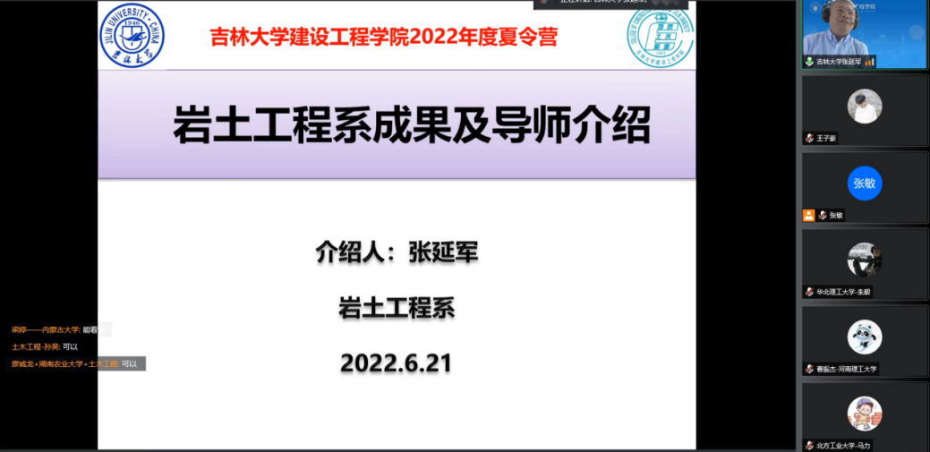 6月21日下午,公司在线举办了地质工程学术论坛和土木工程学术论坛,公司地质工程专业、土木工程专业八位专家教授分别为营员同学们做了精彩的学术报告,与营员们在线上展开热烈讨论。