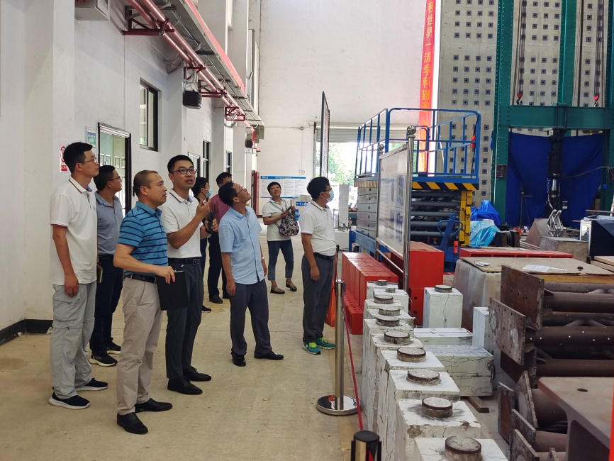 交流座谈结束后,太阳成集团tyc9728王伯昕副经理一行参观了广西大学土木建筑工程公司实验室和教学科研楼。