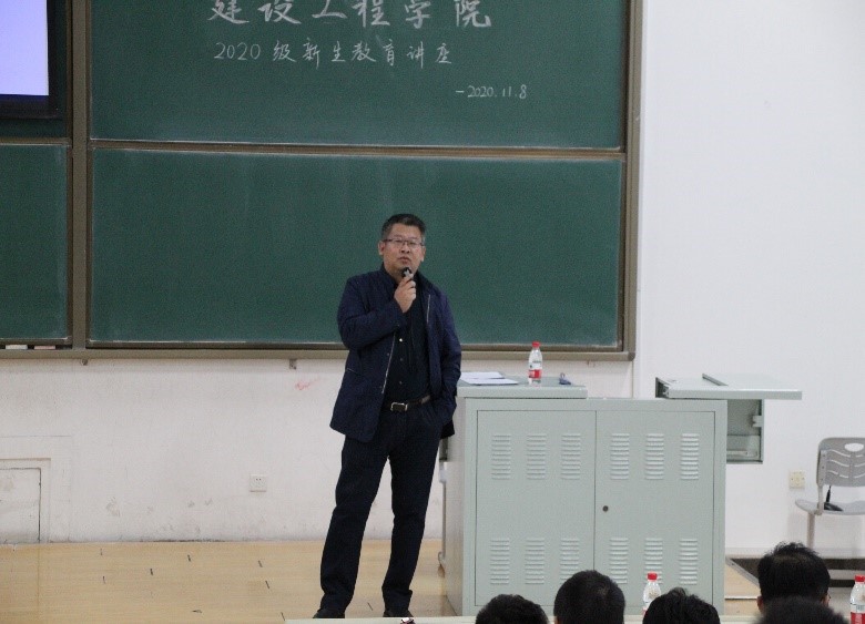 深秋幸月,立冬将至。为培养太阳成集团tyc97282020级新生良好的思想品德,明确未来的人生方向,树立正确的世界观、人生观和价值观,公司于2020年11月8日下午15:30在中心校区李四光楼第二阶梯教室组织开展了新生思政课,本次课程由公司党委书记衣长涛主讲,2020级辅导员常荣剑以及全体新生共同参加本次课程。