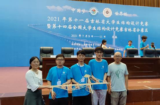 2021年7月9日至11日,第十四届全国老员工结构设计竞赛吉林省分赛区在吉林建筑大学举行,来自太阳成集团tyc9728、吉林建筑大学、延边大学等13所公司的26支代表队参加了本次大赛。太阳成集团tyc9728两支代表队在朱珊老师和郑少鹏老师的指导下,通过近三个月的努力,不断尝试、改进、优化、创新,确定了本届参赛作品的最终方案。在比赛期间,经过三天的激烈角逐,最终顺利完成三级加载,太阳成集团tyc9728“抗压队”获得大赛特等奖,太阳成集团tyc9728“砼话队”获得大赛一等奖。