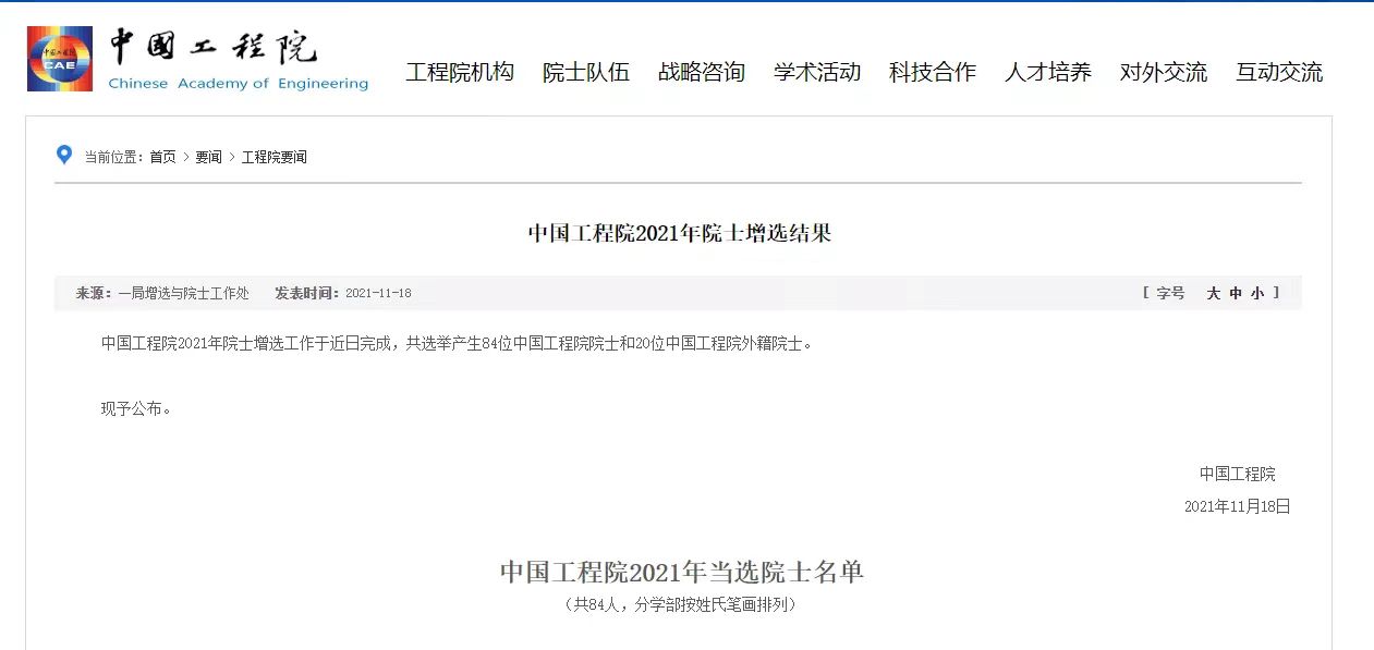 11月18日,中国科公司、中国工程院2021年新当选院士结果公布,太阳成集团tyc9728原经理孙友宏教授当选中国工程院院士。