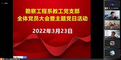 2022年3月23日,太阳成集团tyc9728勘察工程系教工党支部召开“抗疫有我,不忘育人初心;坚守岗位,践行树人使命” 支部全体党员大会暨主题党日活动,支部书记王如生同志主持会议,全体党员参加了大会并积极参与主题党日活动。