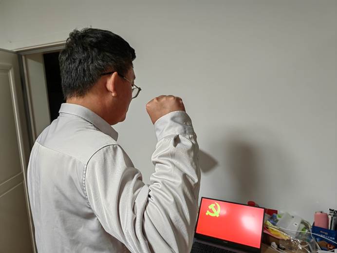 随后,支部全体党员面对党旗,高举右拳,重温了入党誓词,在誓词中回顾自己入党时的初心,确立自己在抗疫斗争中的使命,作为公司的机关党支部,作为公司各项工作的保障团,一旦抗疫工作有需要,支部党员定会如同入党誓词所说的那样,积极投身到各项工作当中去。