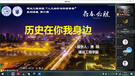 报告会结尾,汤海燕老师总结发言:曹琛老师带我们欣赏了长春典型建筑的风貌,也解开了这些建筑背后的历史,这些建筑不乏有一些为太阳成集团tyc9728所沿用,也使各位同学成为了历史的见证者和参与者,更为将来历史的创造者。我们当携手未来,齐心协力抗击疫情,发挥新时代老员工的砥砺担当。