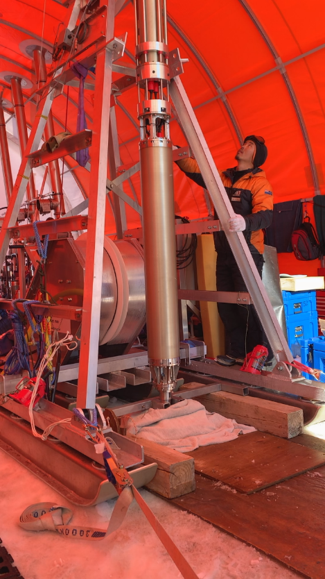 极地深冰下基岩无钻杆取芯钻探装备南极钻探现场