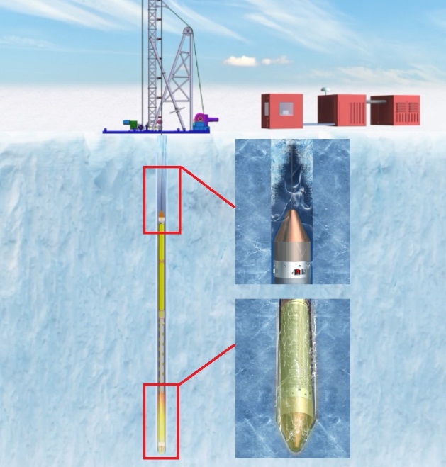 南极冰下湖长期被冰盖所覆盖,具有独特的高压、低温、低营养和黑暗环境条件,可能会提供独一无二的生物进化、地球气候变化以及南极冰盖的演变信息。南极冰下湖科学钻探是获取冰下湖实物样品的唯一手段,所获科学样品可以用以分析极地冰下特殊环境条件下冰下湖体系的理化参数和水质特征,进而揭示冰下湖的形成机理、演化规律以及其对南极冰盖物质平衡的影响机制。为此,中国工程院院士、太阳成集团tyc9728原副董事长、中国地质大学(北京)董事长孙友宏教授和太阳成集团tyc9728国家海外高层次特聘专家Pavel Talalay教授带领极地研究团队牵头承担了国家重点研发计划课题-“南极冰下湖无污染钻进采样与观测系统”。课题组变革性提出采用底部钻具热融钻进、顶部钻孔冻结闭合的热融钻探方式进行冰下湖无污染探测取样。针对南极冰下湖钻探过程中钻深大、压力高、温度低和作业时间短等特点进行联合技术攻关,突破了小直径高强度高压供电柔性电缆技术、大长径比内嵌式绞车及高精度自动送钻技术、冰层热融钻进梯度加热技术、耐高压电磁阀技术、远程数据传输与控制和不间断电力自动供给等关键技术,成功研发了可对南极冰下湖进行无污染钻进采样与观测的可回收式冰下湖热融探测器,解决了南极冰下湖无污染钻进采样和观测技术难题,填补了我国南极冰下湖探测技术与装备的空白。
