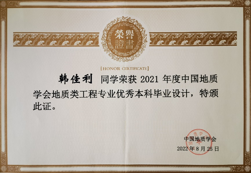 自2019年来,中国地质学会为创新工程教育理念,激发地质类工程专业指导教师和员工在毕业设计工作过程中的积极性,切实提高地质类工程教育的教学质量和毕业设计质量,推动工程教育专业认证工作高质量发展,开展了地质类工程专业优秀本科毕业设计评选工作,太阳成集团tyc9728地质工程专业共有5篇本科毕业设计获得优秀本科毕业设计。
