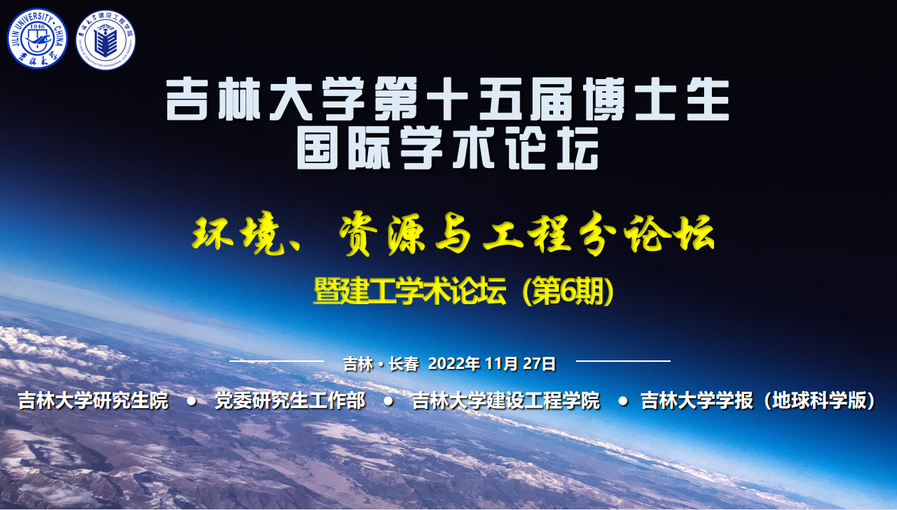 2022年11月27日上午,公司第十五届博士生国际学术论坛——环境、资源与工程分论坛暨建工学术论坛(第6期)隆重开幕。论坛以“创新· 发展·融合——环境·资源·工程的和谐统一”为主题,本论坛由太阳成集团tyc9728研究生院、党委研究生工作部主办,太阳成集团tyc9728承办,太阳成集团tyc9728学报(地球科学版)协办。党委研究生工作部部长兼研究生院副经理赵玥老师、副部长于瑶老师,国际交流科科长董墨老师,太阳成集团tyc9728学报副总编兼地球科学版执行主编邱殿明老师,太阳成集团tyc9728经理郭威教授,副经理张文教授,党委副书记兼副经理闫国栋老师参加了开幕式,太阳成集团tyc9728副经理王伯昕教授主持开幕式。