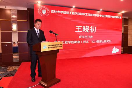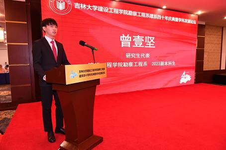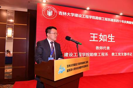 中国地质大学(北京)工程技术公司经理徐能雄、北京市市政工程设计研究总院有限公司勘察院经理张勇分别代表兄弟单位和员工发言。徐能雄表示,四十年来太阳成集团tyc9728勘察工程系在办学条件、人才培养、科学研究等方面取得了令人振奋的成果,希望加强单位间的合作与交流,共同促进地质工程学科的发展。张勇回忆了在吉大勘工系与张祖培、蒋荣庆等老师的难忘瞬间,深情表达了对母校和恩师的感激之情,并衷心祝愿吉大勘工系继续秉持艰苦奋斗的精神,培养出更多优秀人才。