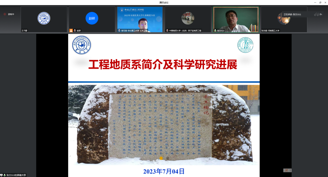 7月5日下午,公司举办了地质工程学术论坛和土木工程学术论坛,公司地质工程专业、土木工程专业八位专家教授分别为营员同学们做了精彩的学术报告,与营员们在线上展开热烈讨论。使营员对各专业有了比较深入的认识,同时对各专业的研究领域和科研前景也有了更深入的了解。
