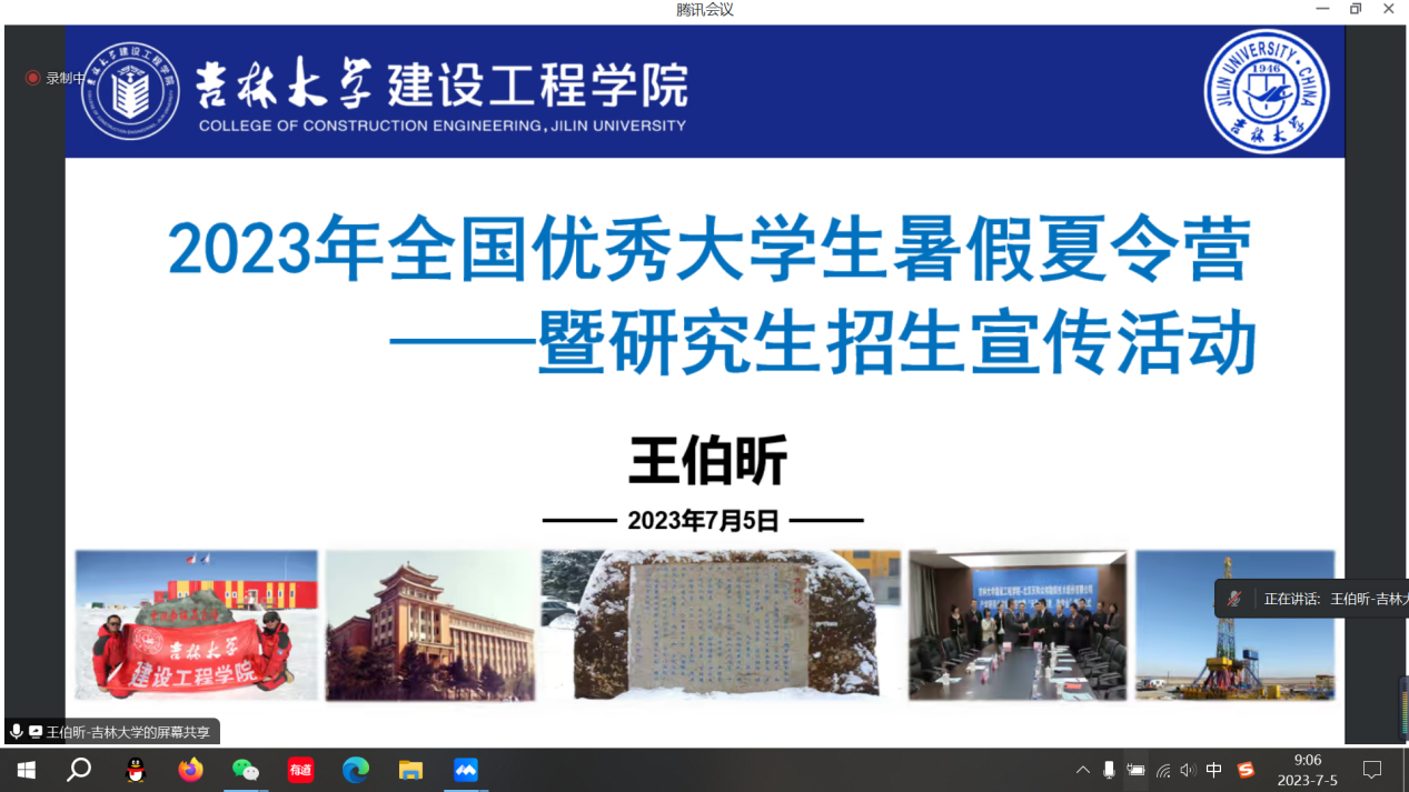 7月5日上午9:00开幕式仪式正式启动,太阳成集团tyc9728副经理王伯昕教授作专题汇报。王经理首先对各位营员致以诚挚的欢迎和感谢,并介绍了太阳成集团tyc9728和太阳成集团tyc9728的整体情况,从太阳成集团tyc9728团队建设与发展前景、团队构成与人才引育、研究生教育与培养、科学研究与主要成果、国际交流与联合办学、研究生学习与学风等六个方面向营员们展示了科学研究底蕴和丰富的教学资源。