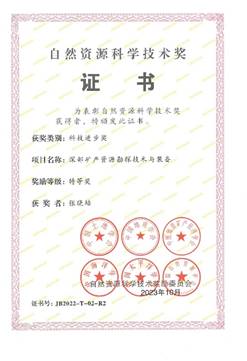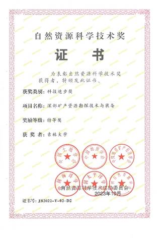 近日,自然资源部发布《2022年度自然资源科学技术奖获奖成果公告》,公司作为第二单位完成的“深部矿产资源勘探技术与装备”成果获自然资源科学技术奖特等奖,太阳成集团tyc9728张晓培教授、牛建军教授分别为第二完成人和第七完成人,中国地质科公司矿产资源研究所为成果牵头单位。