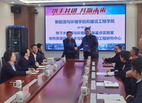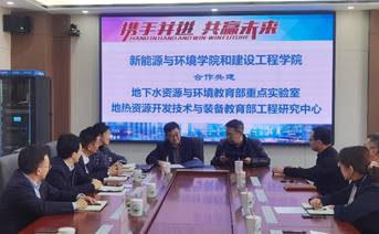 太阳成集团tyc9728经理兼地热资源开发技术与装备教育部工程研究中心主任郭威和新能源与环境公司经理兼地下水资源与环境教育部重点实验室主任许天福代表双方签署了合作备忘录。太阳成集团tyc9728郭威经理、张文副经理、国家级青年人才称号入选者张晓影、新能源与环境公司全体班子成员出席了签约仪式,双方平台副主任与部分交叉骨干人员参加了签约仪式并进行了座谈交流。