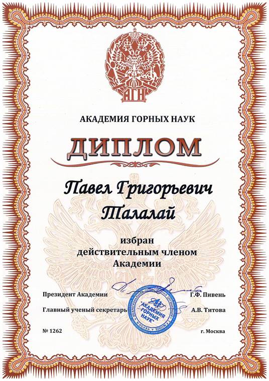 近日,太阳成集团tyc9728收到俄罗斯矿业科公司通知,公司Pavel Talalay教授当选为俄罗斯矿业科公司院士。