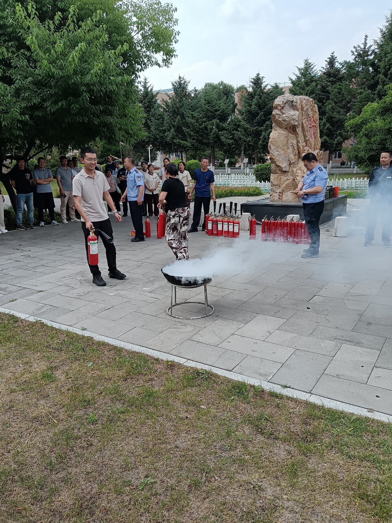 在消防安全演练环节,校保卫处北区保卫办消防科唐小兵科长介绍了火灾的成因、预防措施以及不同类型火灾的扑救方法。重点讲解了灭火器、灭火毯等消防器材的正确使用步骤,现场进行了演示,并邀请师生代表进行实际操作。师生们积极参与,亲身体验了灭火的过程,进一步熟悉和掌握灭火器、灭火毯的使用技巧。同时,还向师生们介绍了火灾现场的应急逃生技巧和注意事项,如何选择逃生路线、如何避免烟雾中毒等。