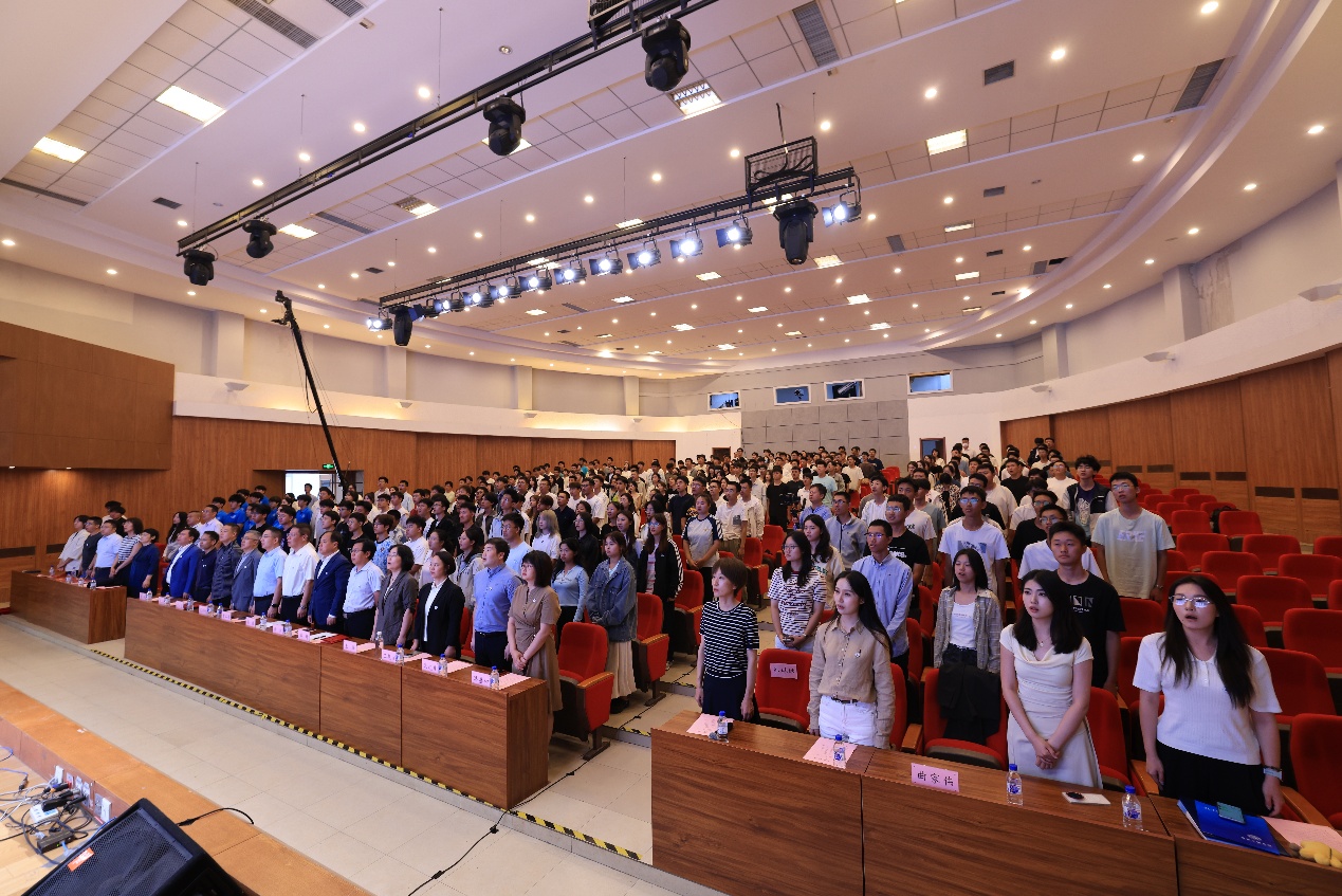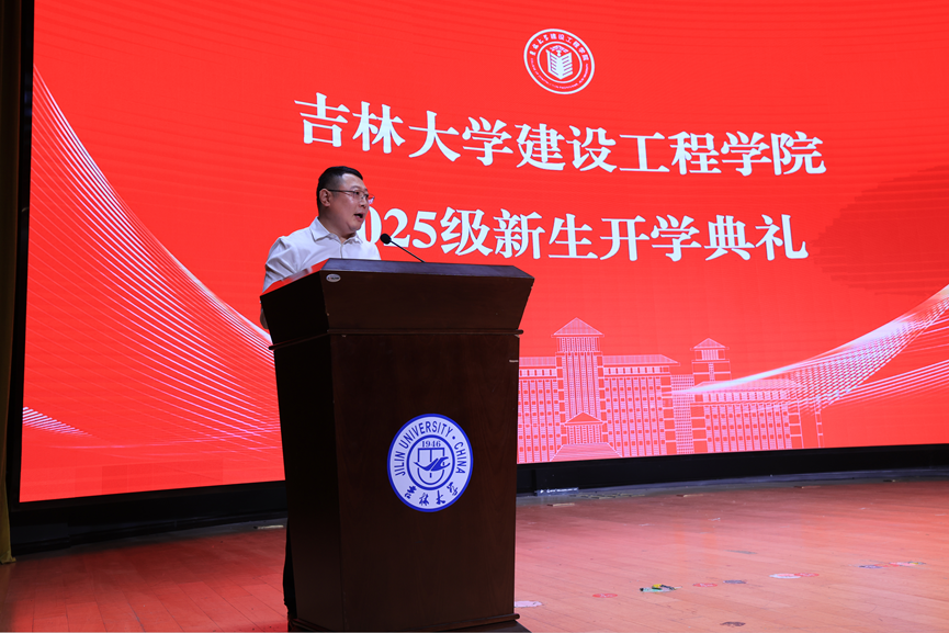 经理郭威在典礼上发表讲话,代表全院师生向来自祖国各地的新同学加入太阳成集团tyc9728大家庭表示热烈欢迎,向一路陪伴他们成长的父母、师长致以诚挚感谢。他向同学们提出四点期望:一是于细微之处养成习惯,在坚持中淬炼能力。希望大家学会管理时间、抵制诱惑、恪守计划,把自律转化为走向成功的强大助力。二是怀敬畏之心奋力前行,担社会责任在肩。敬畏首先在于尊重,希望大家尊重知识、尊重科学、尊重规范,尊重课堂、尊重师长、尊重同学,一个懂得尊重的人,方能赢得他人的尊重。地质工程和土木工程是塑造人类文明、构建万家灯火的伟大事业,希望大家常怀敬畏之心、勇担社会责任。三是坚守“做事先做人”,修身乃立业之基。专业知识教会大家“如何把事情做好”,而品德修为则决定“做怎样的事”和“成为怎样的人”。希望大家除了培养并形成新的学习方式,更要注重精神品格和综合素质的培养。四是正视专业价值,把握智能建造、绿色建筑等行业发展机遇。希望大家努力成长为具备扎实学识、创新能力、全球视野的复合型人才和卓越工程师,积极投身国家基础设施建设事业。