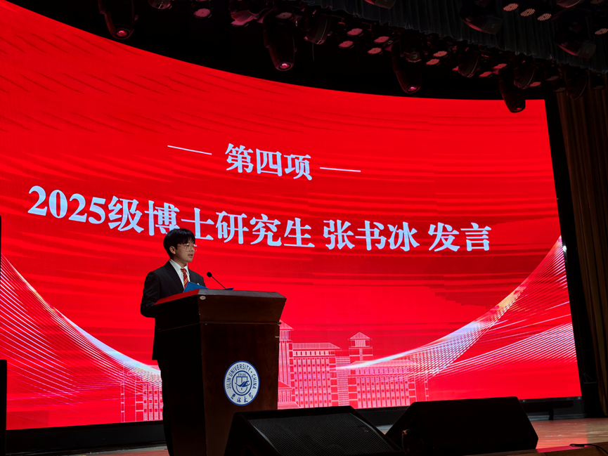 2025级博士研究生张书冰作为高年级员工代表发言,分享了以开放心态拥抱改变、用真挚情感滋养理想、怀着感恩之心前行的求学感悟,鼓励新同学们怀揣初心、坚守热爱,在学术探索与人生成长中绽放理想光芒。