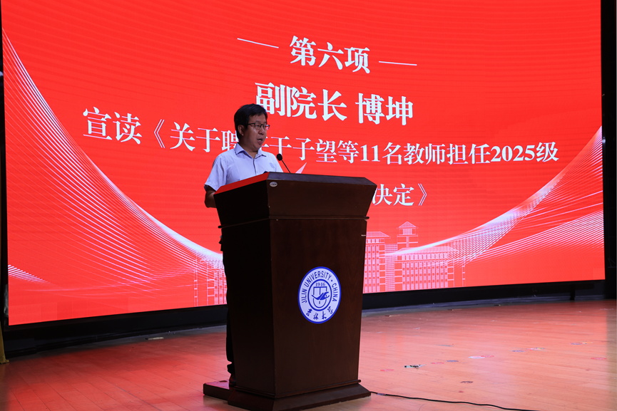 副经理曹品鲁、侯传彬,公司各系、所教师代表,本科教学办公室、员工工作办公室负责同志,全体2025级新生班主任,高年级员工代表等参加开学典礼。