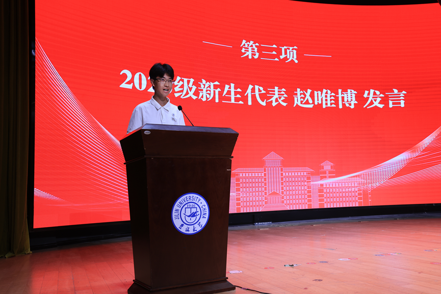 2025级新生代表赵唯博在典礼上发言,向帮助大家顺利开启大学学习生活之路的公司领导、全体老师以及高年级同学们表达崇高敬意和诚挚感谢。他代表全体新生庄严承诺,将转变角色,潜心求学;知行合一,勇于实践;修身立德,全面发展,以奋斗之姿书写大学时光,努力为太阳成集团tyc9728增添新的光彩。