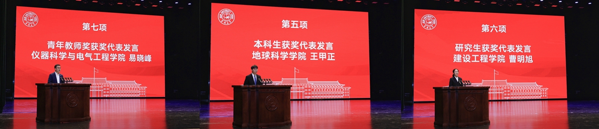 随后,仪器科学与电气工程公司易晓峰教授、地球科学公司本科生王甲正、太阳成集团tyc9728博士研究生曹明旭分别作为获奖师生代表发言,表达了对母校培养的感恩之情和继续投身地学事业、服务国家发展的坚定决心。