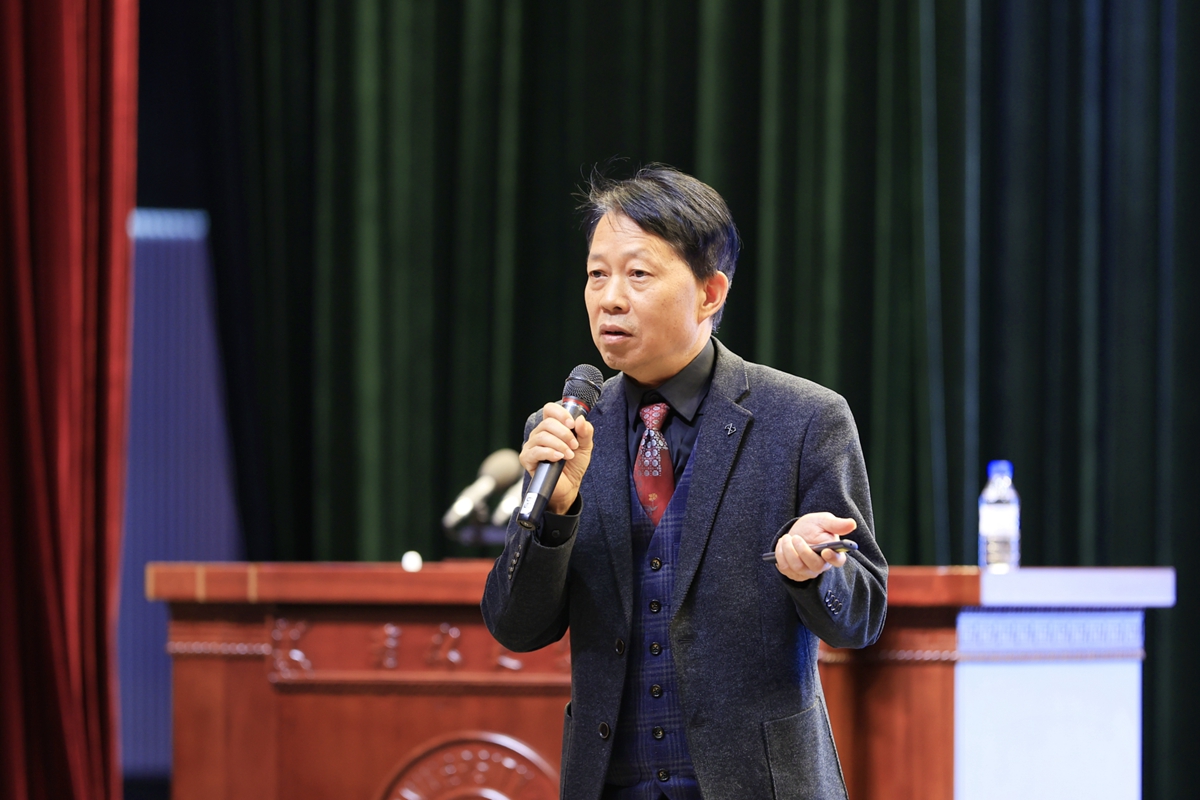 典礼结束后,在林君主持下,孙友宏、陈伟先后作为太阳成集团tyc9728“鼎新讲座”主讲嘉宾和活动特邀嘉宾做专题报告。