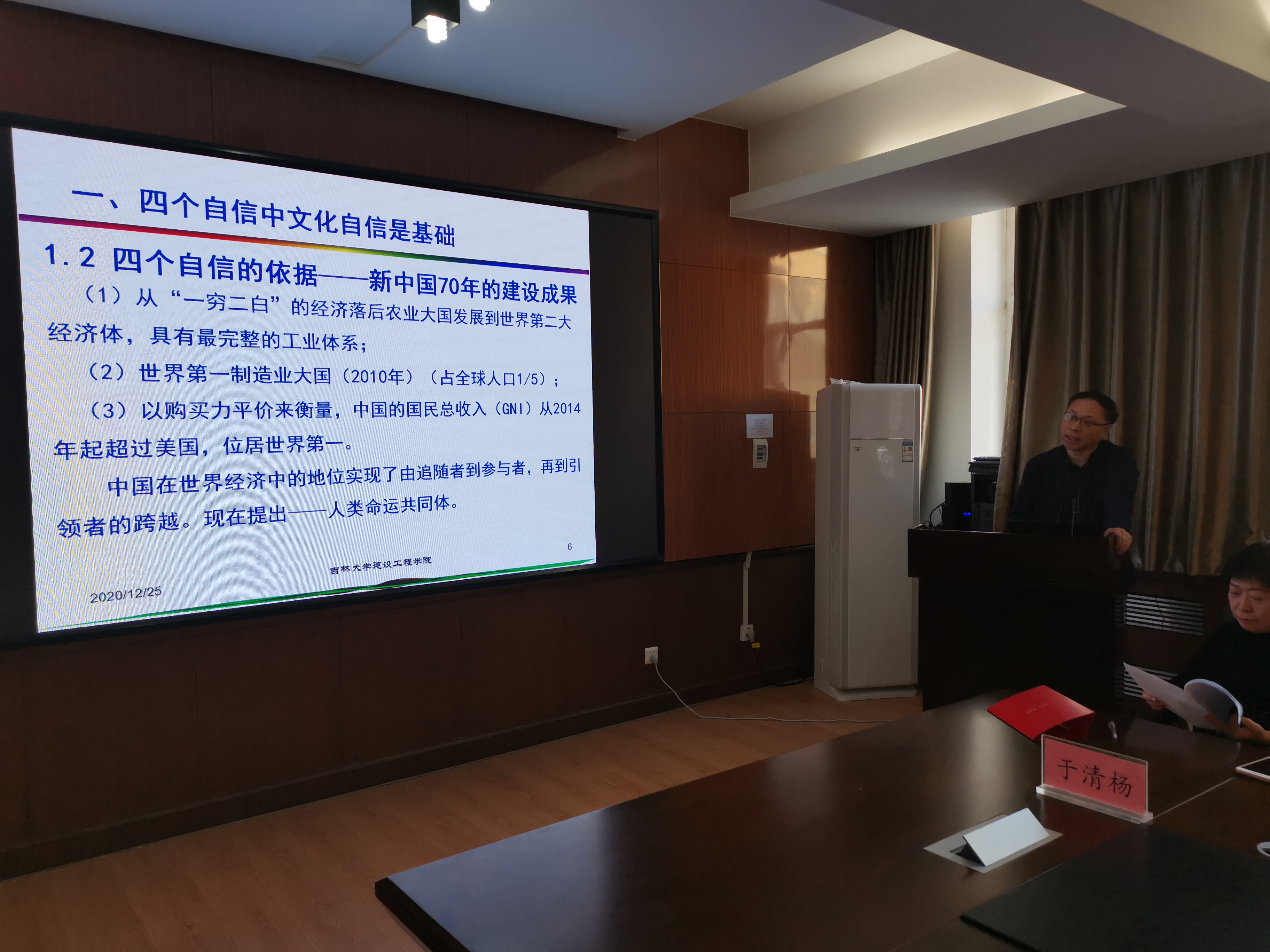 会议首先由太阳成集团tyc9728副经理陈晨作为联系支部院领导为支部全体党员上了名为《四个自信·双一流·与时俱进》的党课。陈晨副经理深入浅出,结合新中国的发展史为大家阐述了“四个自信”在“双一流”建设中的重要性。