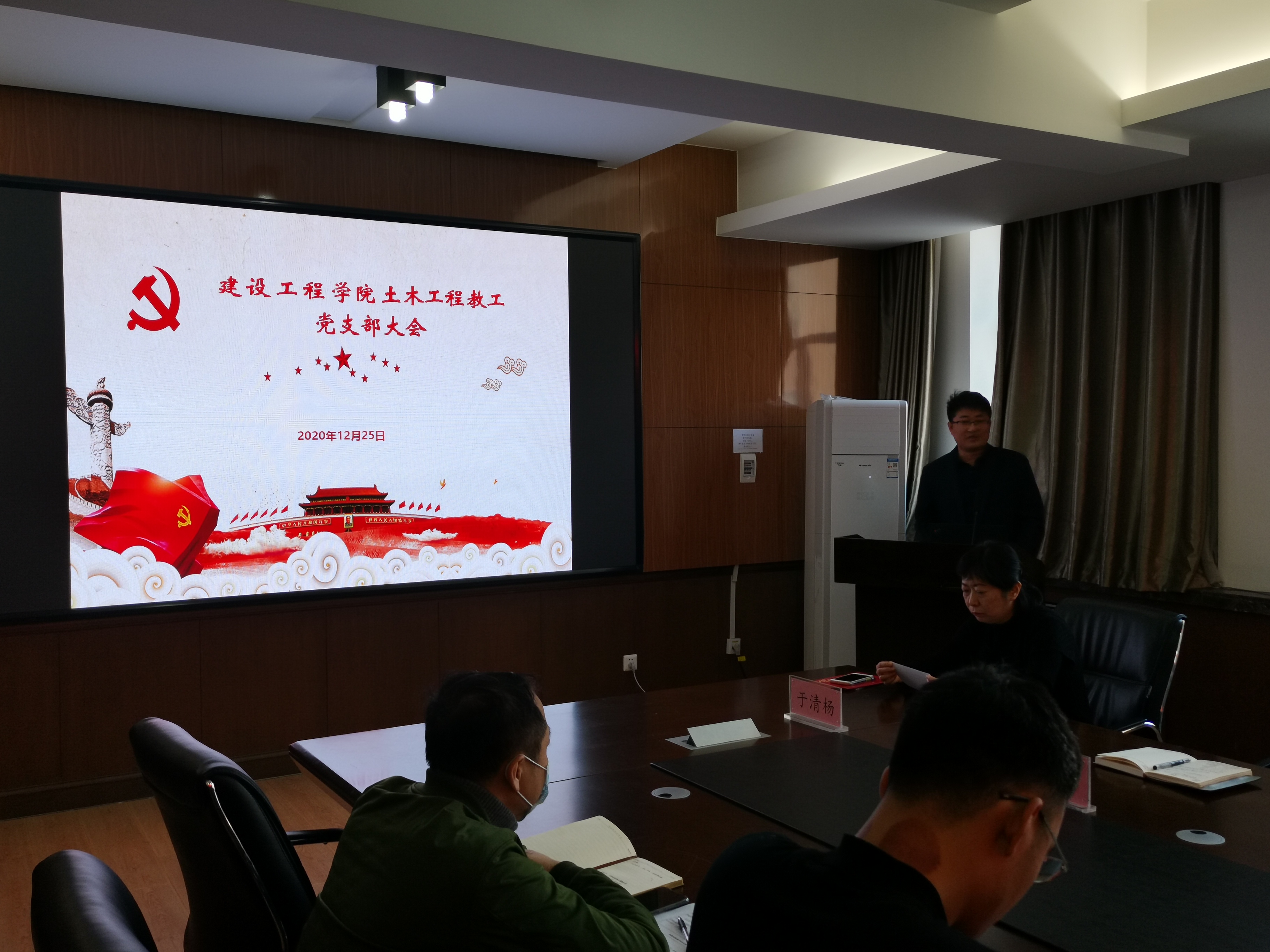 2020年12月25日太阳成集团tyc9728土木工程教工党支部召开党员大会,公司党委常委、副董事长边铁出席会议,党委组织部、太阳成集团tyc9728相关同志参加了会议。会议由太阳成集团tyc9728土木工程教工党支部书记于清杨主持。