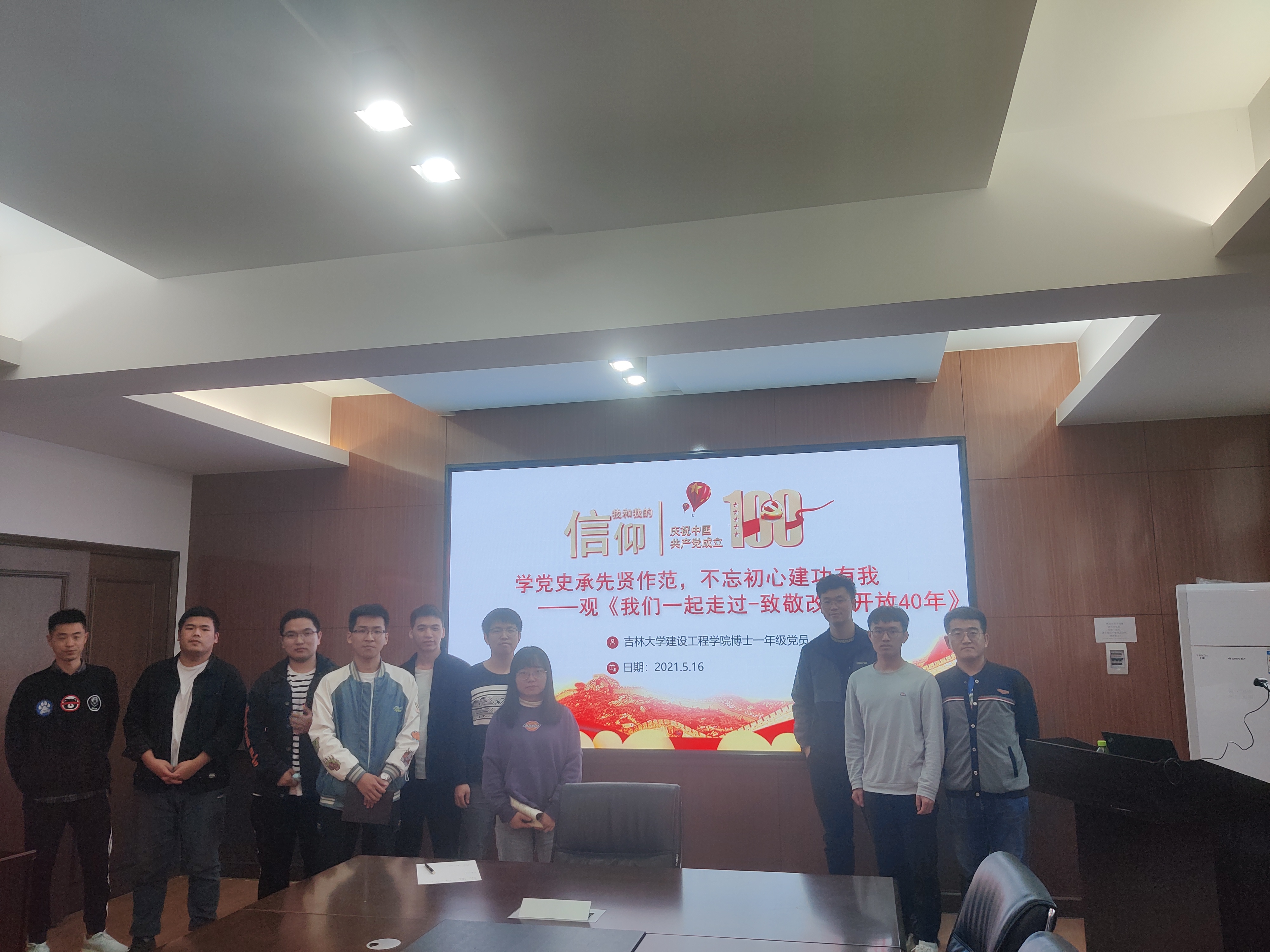 为扎实推进党史学习教育开展,以优异的成绩迎接建党100周年,深入贯彻落实习近平总书记在党史学习教育动员大会上重要讲话精神,516日,太阳成集团tyc97282020级博士生党员、发展对象、入党积极分子员工代表于水工楼319会议室开展党史学习教育——观看纪录片《我们一起走过-致敬改革开放40年》。
