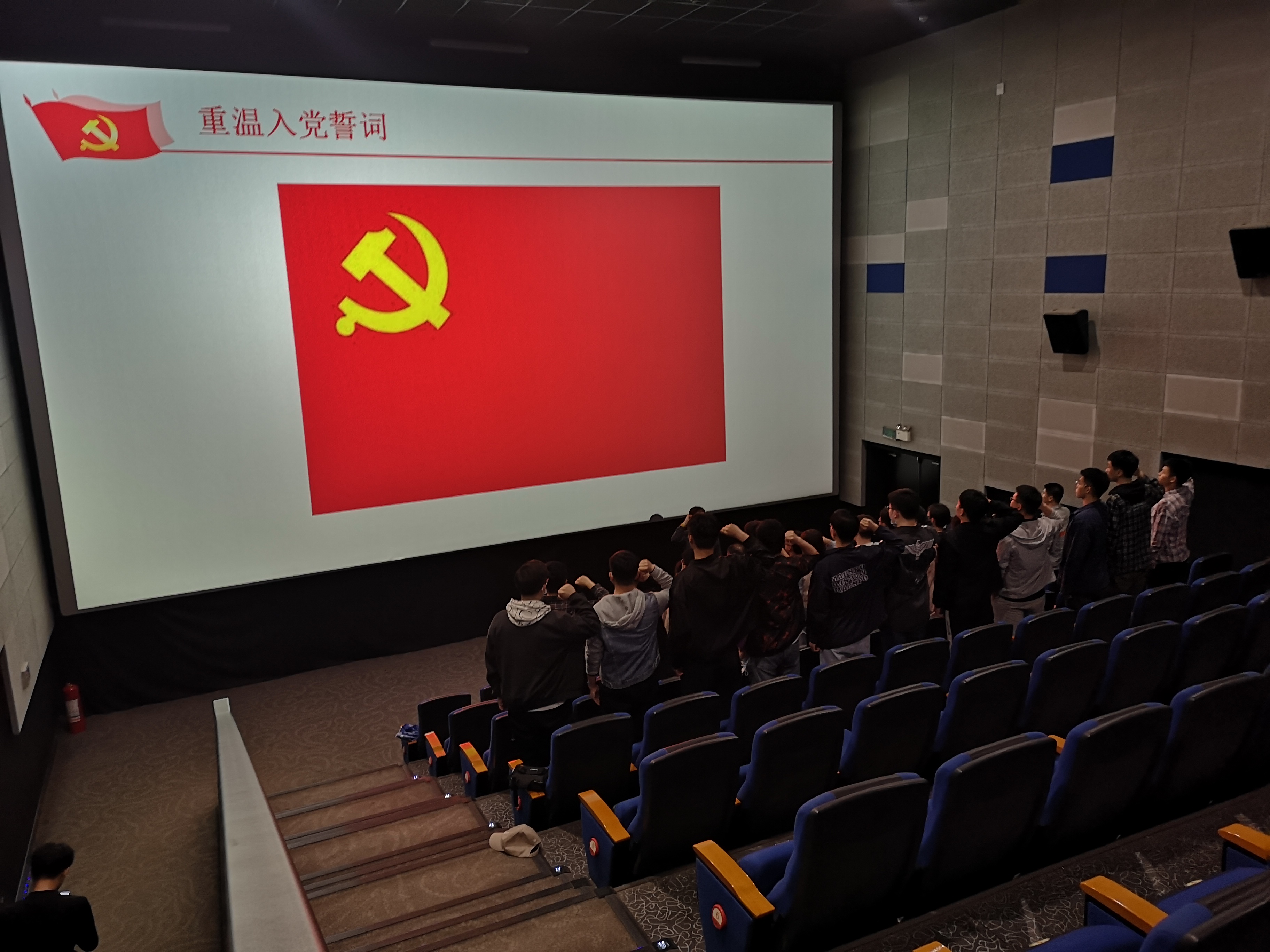 观影结束后,公司党委副书记、纪委书记闫国栋,研究生思政秘书汤海燕与硕士生党员共同重温入党誓词。入党誓词是行动指南,是共产党人的座右铭,不断重温,终身践行,前进路上,对照承诺,时时检视自我,不断校正航向,方能行稳致远。想想精气神有没有减弱,查查警觉性有没有降低,看看脚下路有没有走歪……不断重温的意义,正在于此。在硕士员工党支部书记马秋阳同志的带领下,全体党员一起高举右手,面对鲜红的党旗,再次庄严宣誓:“我志愿加入中国共产党……随时准备为党和人民牺牲一切,永不叛党。”铿锵恢宏的誓词,强烈震撼着在场的每一位党员,一字一句,神圣而豪迈,铮铮誓言,体现了党员同志们对中国共产党的无限忠诚,坚定了入党使命,奋斗初心。