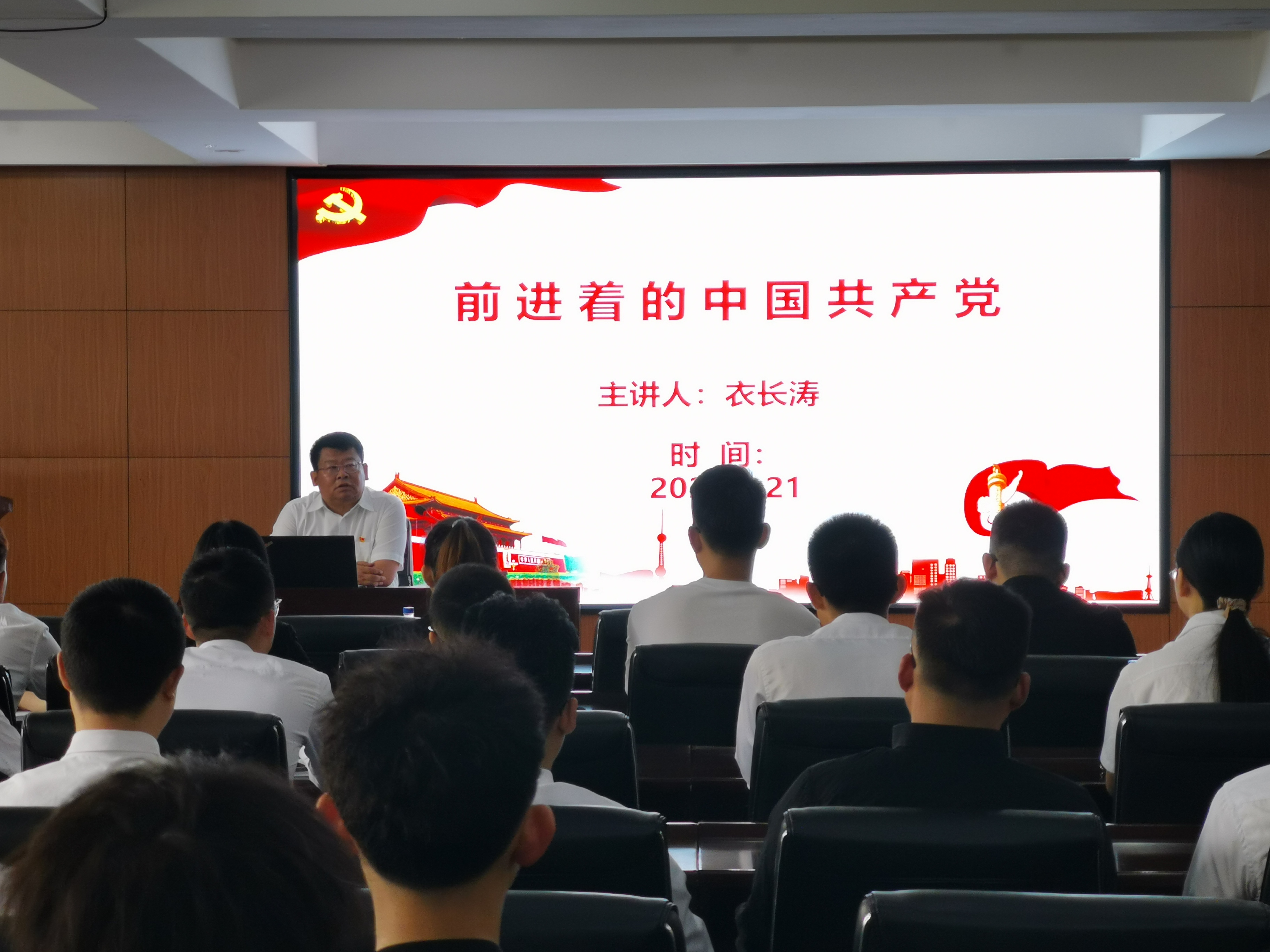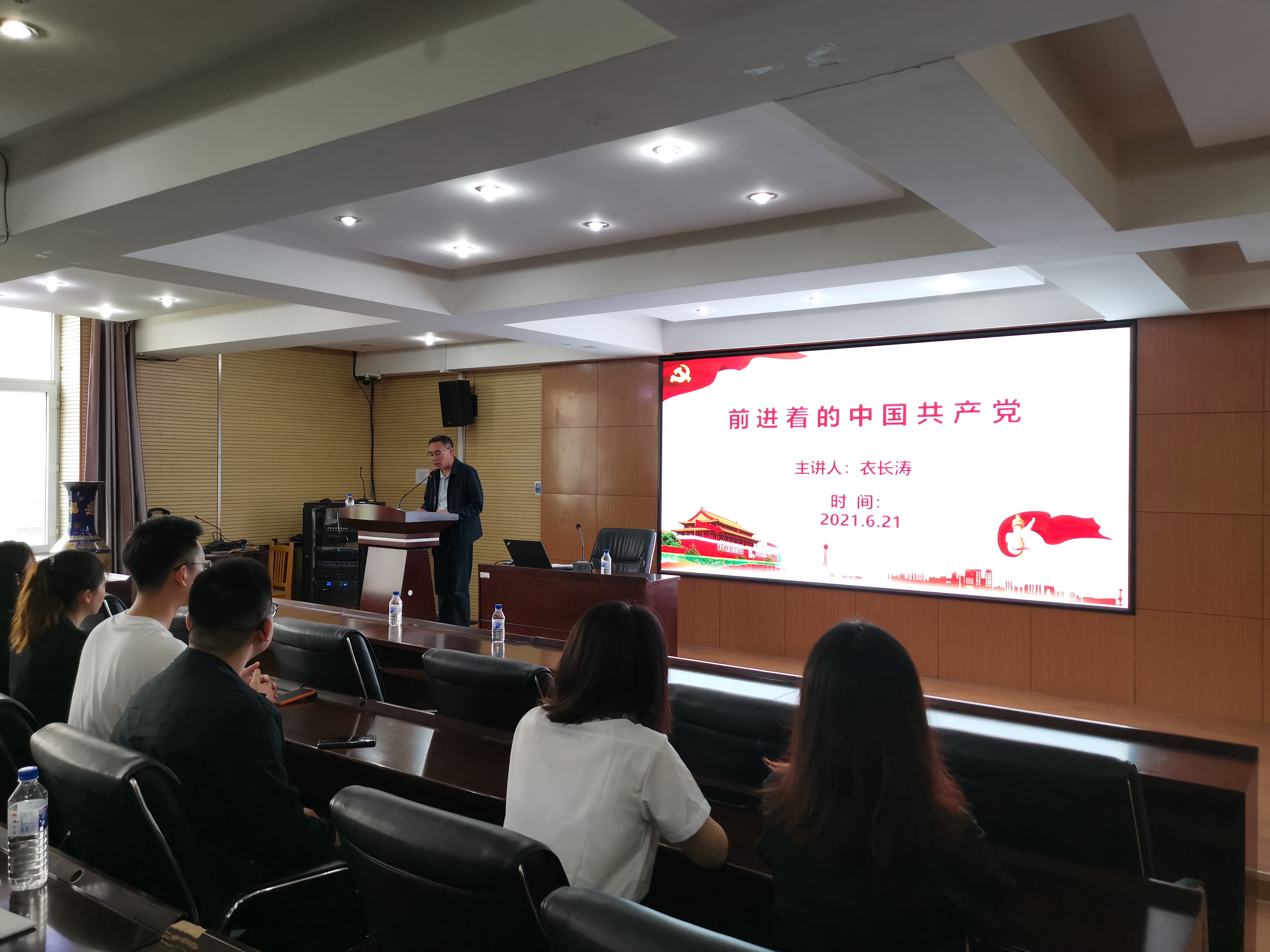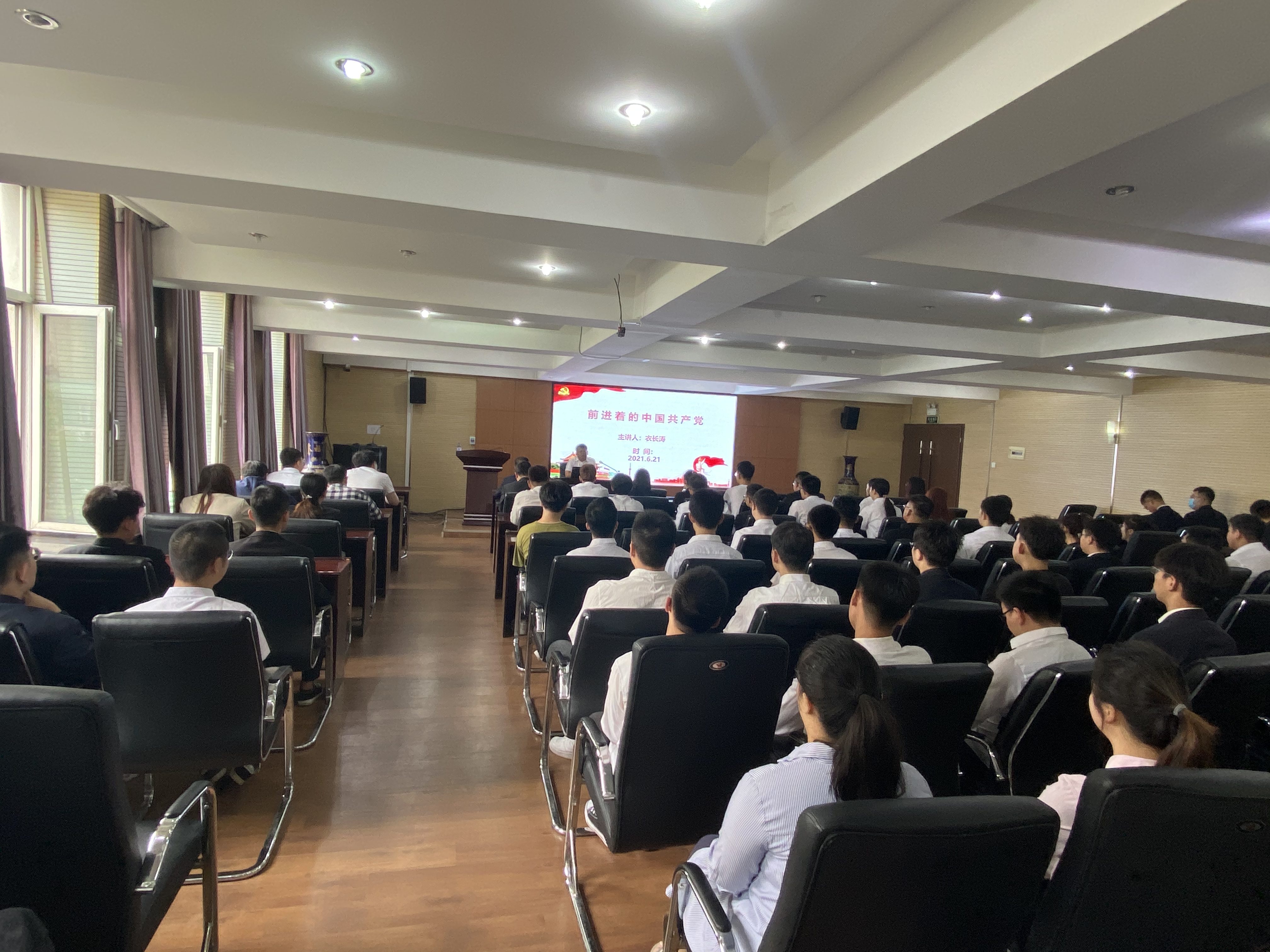 6月21日上午9时,太阳成集团tyc9728在水工楼325会议室开展2021届毕业生党员最后一次党课。公司党委书记衣长涛以“前进着的共产党”为题 ,为公司全体研究生、本科生毕业生党员讲授了一堂生动的党课,公司党委副书记闫国栋主持活动,党委办公室主任吕优、研究生秘书汤海燕参加党课学习。