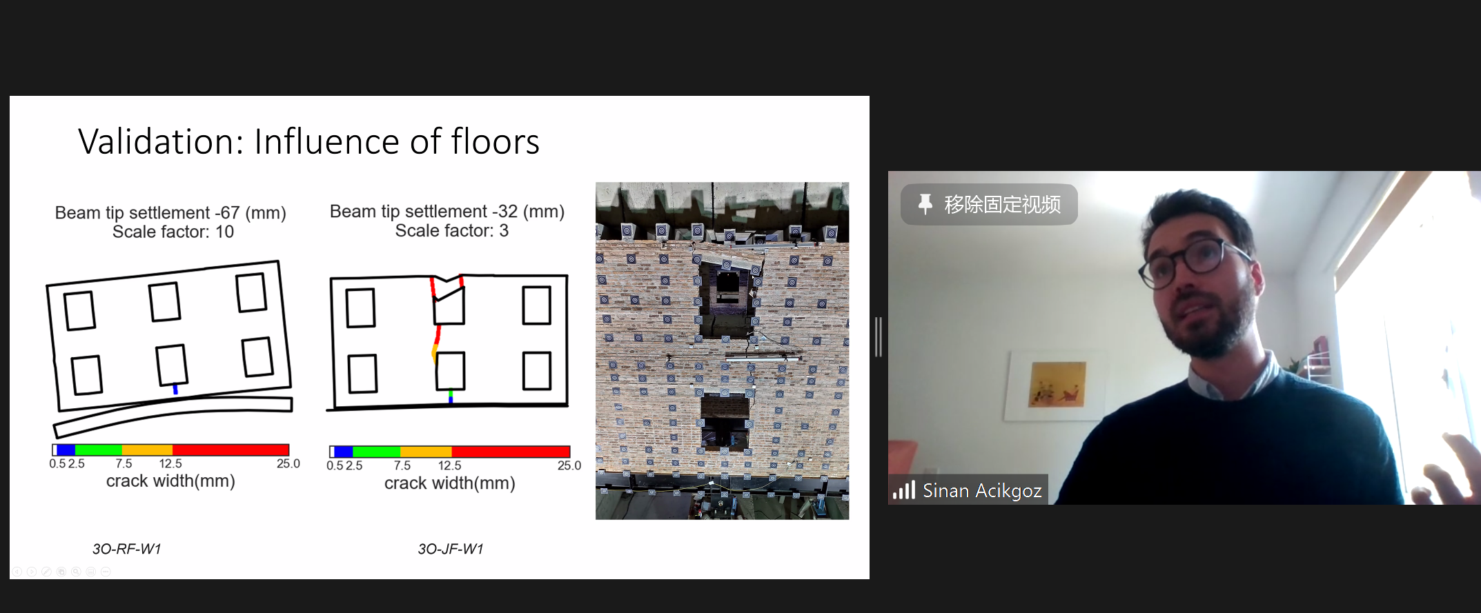 讲座中,Sinan Acikgoz副教授结合正在开展的实验研究和生动案例,向与会师生分享了如何在地下工程施工背景下利用前沿技术开展地面建筑物健康检测和监测,为大家细致地介绍了量化结构局部损坏的测量技术、测量结构响应的高效建模技术等前沿科学成果。Sinan Acikgoz副教授的报告内容丰富,生动的演讲风格引人入胜。在交流互动环节,太阳成集团tyc9728师生积极踊跃提问,Sinan Acikgoz副教授一一给予耐心解答。最后,活动在观点的碰撞与交融之间落下帷幕。