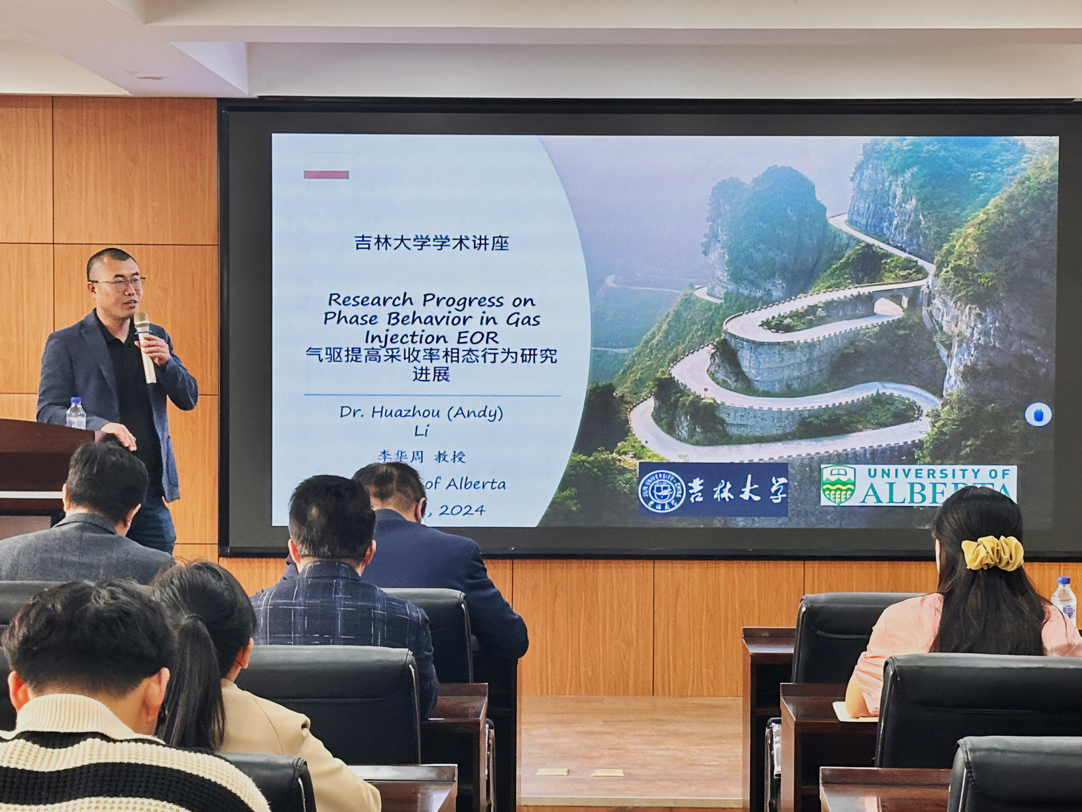 4月22日,太阳成集团tyc9728邀请加拿大阿尔伯塔大学Li Huazhou教授来院交流,并做“气驱提高采收率相态行为研究进展”专题学术讲座。Li Huazhou教授为加拿大阿尔伯塔大学终身教授,长期从事油田开发与工程研究,主要研究方向为提高采收率技术研究、油藏流体相态特征测量和模拟、油藏流体相态行为计算软件开发等,承担加拿大自然科学和工程研究科学基金等项目10余项,共发表 SCI论文120篇。